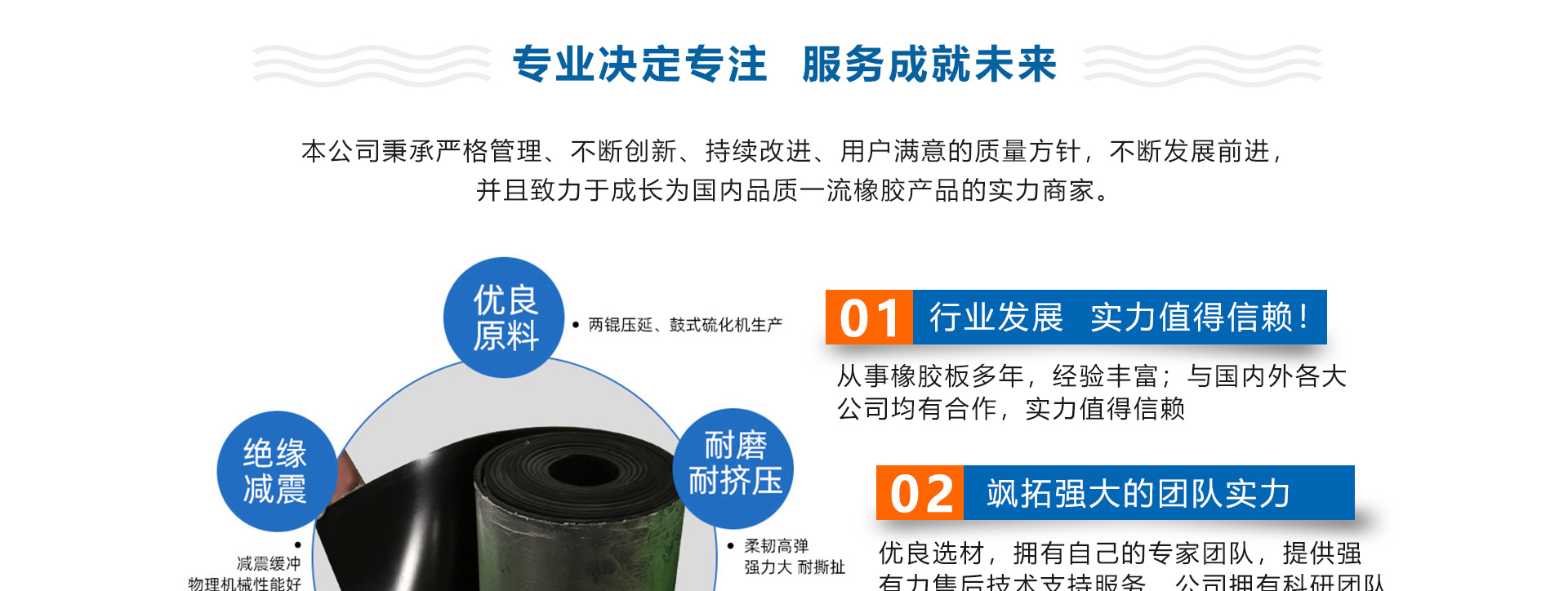 安徽颯拓新材料科技有限公司成立于2018年07月,公司位于安徽省宣城市宣州區貍橋鎮宣州經濟開發區南漪湖大道28號,公司主要生產研發銷售橡膠板、工業橡膠板、絕緣橡膠板、天然橡膠板、加布橡膠板、氟橡膠板等,公司有完善的師資團隊及生產設備。本公司秉承嚴格管理、不斷創新、持續改進、用戶滿意的質量方針,不斷發展前進,并且致力于成長為國內品質好的橡膠產品的實力商家。公司長期以優良的服務、合理的價格與多家企業建立了長期的合作關系。安徽颯拓新材料有限公司熱誠歡迎各界前來參觀、考察、洽談業務。